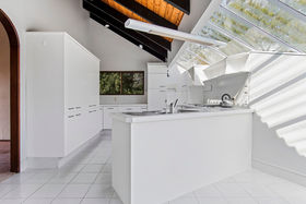 The ground floor of this home offers a living area connected to the yard, two bedrooms, laundry and separate games room. Upstairs you have amazing raked ceilings that are so "en vogue' right now, separate dining zone, light filled kitchen, large lounge with woodburner, master with ensuite and walk in robe, study and even a little bar which is fitting for it's era.