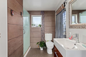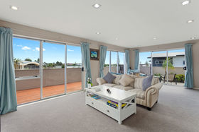 A stunning and practical elevated home with ocean views, especially from the main bedroom, which then wraps around to the Manawahe Hills for the stunning sunsets. Spread over 3 levels, the ground floor comprises double garaging, rumpus or 4th bedroom with ensuite. The timber stairs lead you to the main hub of the home where you will find a spectacular outdoor living area complete with a pizza oven, pergola and plenty of seating and leads straight from the kitchen/dining area, amazing alfresco living. The fabulous kitchen features polished concrete floors with splashes of Paua which enhances the aqua marine splash back, a beautiful hardwood bench top, a scullery ... a great entertaining kitchen. The lounge has the ability to operate as two living areas depending on how you arrange the seating. On this level there are two bedrooms, bathroom with a spa bath and laundry facilities. Upstairs on the third level is the master suite retreat, maximising all day sun, beautiful shutters , large walk in robe, stylish ensuite, an area for a small couch and access to a balcony.