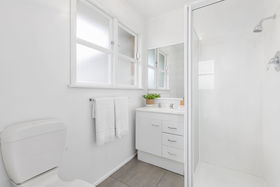 Completely covert, despite a road front perch, it boasts a world of privacy behind tall, newly painted fencing. Recently refurbished, the interior strikes a harmonious balance of Scandinavian cool and modern minimalism. Stark white walls are offset perfectly by the natural timbers of built-in cabinetry. This theme continues throughout the home, and into each of the three ample sized bedrooms. Cleverly separated from the central hub, restful slumber is a promise for the entire family.