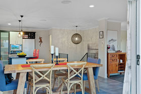 The very functional open plan living upstairs with a modern kitchen and new appliances allows for the family to gather together, while the large deck provides extra space for entertaining friends. There are two bedrooms up on this level, along with a super size main bathroom with soaking tub. The current owners have created the master bedroom downstairs with sliders out to the spa area -very tempting for private spa dates! There are two more spacious bedrooms downstairs, another bathroom, the laundry and a large internal access double garage with plenty of off street parking for the boat or campervan. You may have considered a B&B situation and this home could deliver.