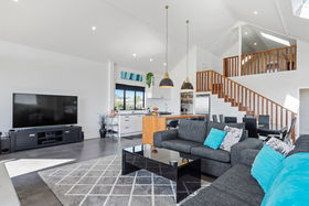 A contemporary country home with sustainable features and beautiful views. The elevation and the way this easy big acre slopes very slightly to the east enhances the experience of living in a crisp, bright, light home which combines complete privacy with expansive coastal and city views. The architecturally designed home uses thermal mass to huge advantage, especially in the double height main living area where a large concrete fireplace adds ambiance. The bedroom wing is configured so the hall absorbs warmth, the master bedroom enjoys all day sun, the other bedrooms soaking up the afternoon sun and Kaimai Ranges outlook. The modern monochrome palette is warmed and enriched by recycled rimu timber in stairs to a mezzanine lounge and guest bedroom, in the kitchen island and the en suite, one of three stylishly appointed bathrooms. Relax outside on covered deck or sheltered north side patio beside which is one of several places you might put a pool. There's ample parking between the home and the recently added 60 sq m concrete floored shed. Pick your own citrus from 20 trees, feijoas from 153 bushes forming a boundary hedge and vegetables from the sunny plot. Easy care landscaping offsets the clean house profile and offers scope for more gardens if desired; to share with the abundant birdlife. A low maintenance lifestyle making it feasible to combine with careers, Tauranga within convenient proximity. Boundary indicative only. https://www.propertyfiles.co.nz/property/NTTG00575