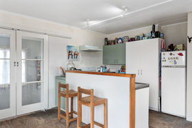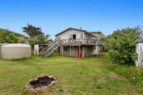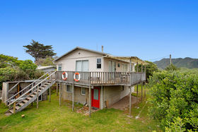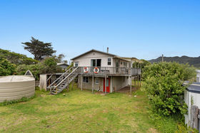 A traditional kiwi beach house on an awesome beachfront site (809m2), with good vehicle access and parking. Walk through the gate at the end of the garden and onto the Dunes Trail and beach. On two levels the home has a relaxed vibe, several living areas and deck area, and is surprisingly private. There are two bedrooms upstairs. Internal stairs lead down to another bedroom, second toilet, garage plus workshop, and a good amount of utility space. A woodfire downstairs heats the water, and also heats upstairs. Can be sold furnished. You need to be in it to win it.