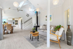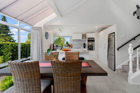 Elevated above the road, this property is surprisingly private. Also surprising is the view to the Mount and harbour from some areas of the home that is framed beautifully by well positioned windows.