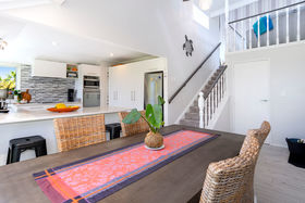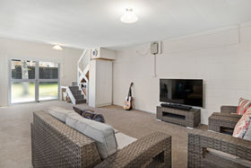 On approach the property has a wide turning area which provides ample off street parking and is overlooked by a cosy outdoor patio and lawn. The interior of the home has living areas both downstairs and upstairs and don't miss the rumpus access from the back of the garage. The rumpus has external access which bypasses the main entry of the house so is a great option for running your home office even if you have regular work visitors.