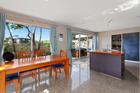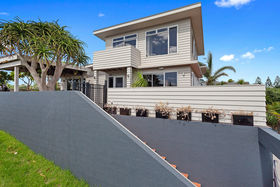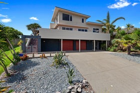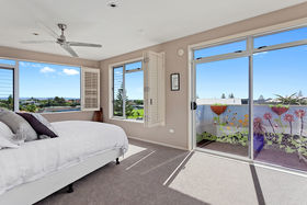 A stunning and practical elevated home with ocean views, especially from the main bedroom, which then wraps around to the Manawahe Hills for the stunning sunsets. Spread over 3 levels, the ground floor comprises double garaging, rumpus or 4th bedroom with ensuite. The timber stairs lead you to the main hub of the home where you will find a spectacular outdoor living area complete with a pizza oven, pergola and plenty of seating and leads straight from the kitchen/dining area, amazing alfresco living. The fabulous kitchen features polished concrete floors with splashes of Paua which enhances the aqua marine splash back, a beautiful hardwood bench top, a scullery ... a great entertaining kitchen. The lounge has the ability to operate as two living areas depending on how you arrange the seating. On this level there are two bedrooms, bathroom with a spa bath and laundry facilities. Upstairs on the third level is the master suite retreat, maximising all day sun, beautiful shutters , large walk in robe, stylish ensuite, an area for a small couch and access to a balcony.