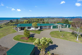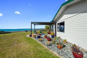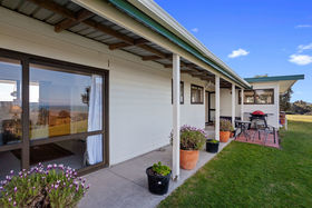 Inside the home is spacious, with post card like views from the kitchen and dining area. The lounge is inviting and warmed by a wood burner. The home has two double bedrooms with large wardrobes. Welcome the morning sun as it graces the Eastern Bay Coastline from your bed in the Master bedroom. Outside there is a deck that is accessed from the dining area. A grand lawn surrounds the home and borders two large paddocks. There is also a small orchard, vegetable garden, chicken run, and a three bay garage. Water is provided from a metered bore.