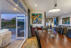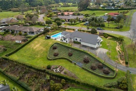 Everything you desire for a peaceful life and family fun in an attractive semi-rural lifestyle enclave. Appealing traditionally referenced touches create the fall in love factor in this beautifully finished, architecturally designed home completed in 2007. Loads of contemporary features deliver every convenience and comfort for a full family life. The oak flooring of the foyer extends through kitchen and dining which are flanked by a family room with a gas fire and a sunny lounge separated by cavity sliders. Bi-fold doors open to covered outdoor living by the cleverly concealed barbeque area and heated pool complete with outdoor shower. Plenty of open deck too, off the living areas and the master bedroom, a haven like suite at the end of the home. A versatile study/fifth bedroom near the front door increases family options. Triple garaging has ample space for the mower and toys and copious storage in the attic above. There is also good off-street parking. Live here and embrace the country atmosphere on three quarters of an acre on a corner site developed into a delightful setting in sought after Oropi Downs; cherry trees, garden borders, hedging and ground cover. Enjoy lovely local walks and easy access to retail and education. The new Tauranga Crossing at The Lakes nearby adds to your retail and recreational choices, the CBD is a short commute. What more could you want? Boundary indicative only. https://www.propertyfiles.co.nz/property/NTTG00550