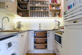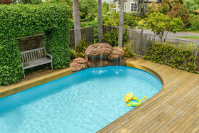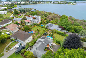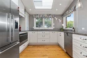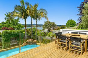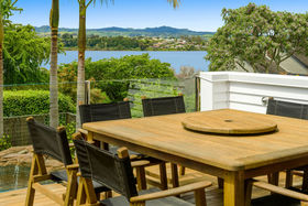 Nestled on a gentle slope, with expansive views out towards the inner harbour, the stylish granite kitchen with spacious scullery and dedicated drinks station is brightly lit by the large skylight above. A central open dining area flows to an elegant lounge with large picture windows framing the view, or out to a sun soaked deck overlooking a fabulous pool area with trickling water feature, an outdoor fireplace and onto an established potager garden replete with fruit trees and raised vegetable plots. A bonus is the grassy section large enough for children and pets to play, or there is the option to subdivide and reap the rewards.