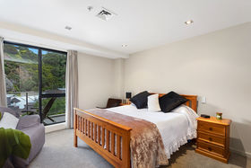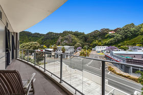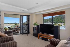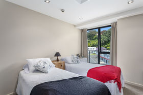 Larger than most apartments, this stunning offering boasts two good sized bedrooms plus office (or a third bedroom for visitors). The master includes everything you could ask for, with a walk through wardrobe to generous en-suite and a ranch slider opening onto a deck for expansive views of native trees adorning the ridge-line from the heads through to town.