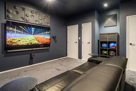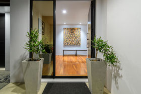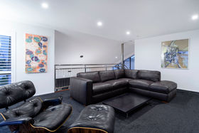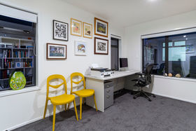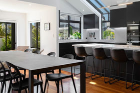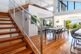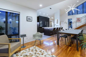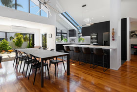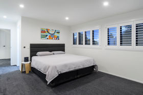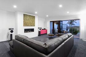 It's a flexible home with an upstairs adult zone, including master bedroom and bathroom, copious storage and large second lounge with balcony and ocean peeps. Soaring ceiling and skylit kitchen enhance ground floor living where bifold doors open to partly covered north facing patios. Wonderfully social with a comprehensive kitchen with Caesarstone benchtops and generous dining area inviting expansive entertaining. Luscious fully tiled bathrooms are beautifully appointed. The guest suite faces the garden, there's a media room/ fourth bedroom with acoustic blinds and a large dedicated office. Rinnai gas fires and underfloor heating warm you in winter, air conditioning cools you when its hot.