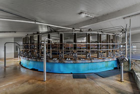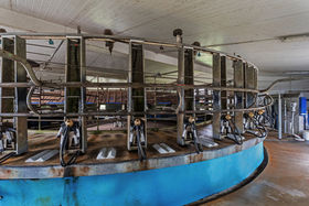 • A modern 44 Bail rotary cow shed with office and dry goods storage rooms, featuring an in-shed feed system