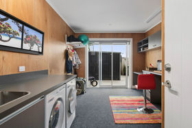 The double garage also benefits from underfloor heating and provides internal access to the laundry and practical workshop area. Outdoors, the landscaped grounds are designed for both relaxation and enjoyment, with a spa pool, garden shed, productive vegetable gardens and an irrigation system to keep everything thriving. Bordering the Botanical Gardens, the setting is alive with native birdlife and offers a calming, private backdrop that is truly special.