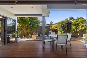 Designed for easy, low-maintenance living, the home flows seamlessly from the dining and lounge areas onto sunny patios, perfect for relaxing or entertaining in comfort.