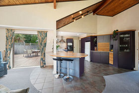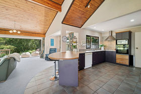 Upstairs, light-filled open-plan living invites you to unwind. The kitchen, dining, and lounge flow effortlessly onto an expansive deck, a seamless extension of your living space and the ultimate setting for sunset wines and long summer evenings. A cleverly designed sliding kitchen window opens to an outdoor bench, making entertaining a breeze, perfect for BBQs, laughter, and relaxed gatherings with friends and family.