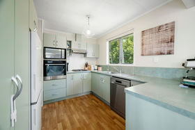 This property is set nicely above the road and positioned for all day sun. It is a well presented home that features 3 bedrooms, 1 bathroom that has a shower and a full bath with a separate toilet. The kitchen is nicely Connected to the large open plan living and dining areas, this modern kitchen includes a dishwasher, gas hobs, and a self-cleaning wall oven, making cleanup a breeze. The cooler months will be so comfortable with a log burner fireplace on wetback , an HRV ventilation system for dry air flow year round ,assisted by insulation underfloor, exterior walls and in the ceiling . The property has a double garage, a carport, and a woodshed. It is fully fenced making it safe and ideal for children and pets to play. The outdoor area features a large deck that opens out onto a private lawn surrounded with mature trees and shrubs, it also has a mandarin, feijoa, and a lemon tree. There is even the bonus of a very generous storage area under the house . This is a very smart looking property with huge street appeal and incredible family functionality.