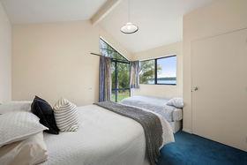 Upstairs, the mezzanine level overlooks the living space below and captures beautiful glimpses of the lake. Here you'll find two additional bedrooms, including a spacious master retreat and a large second bedroom, along with a versatile office or extra sleeping space and a well-appointed second bathroom. For the ultimate in lakeside living, the property also features its own private boat ramp, giving you direct access to Lake Rotoiti whenever adventure calls.