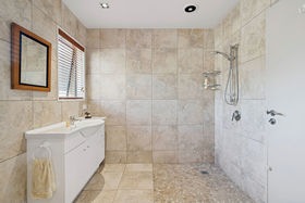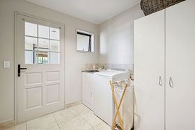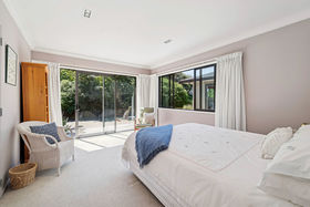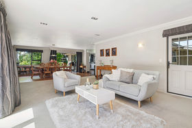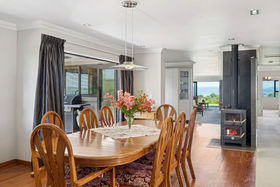 Living is well suited to both family life and larger gatherings, flowing from the lounge to a spacious, modern kitchen, and a generously sized dining area. Recycled rimu floorboards add appeal while the baker's oven is an interesting statement that is also practical for boosting the heat. The second living space enjoys a tranquil garden setting.